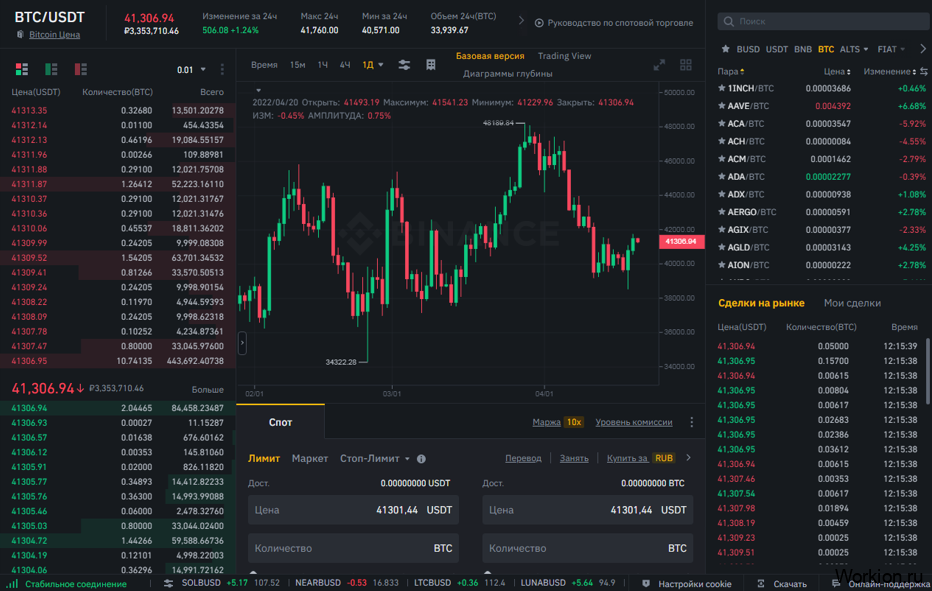 Повозившись один раз со всем этим, вы получите инструмент для выгодного обмена любой криптовалюты на хороших условиях. Плюс вам будут доступны другие полезные функции – инвестиции, трейдинг, маржинальная торговля, заработок на партнерской программе, майнинг и многое другое. Сделки проводятся через торговую платформу: