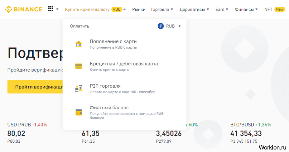 Это самая крупная биржа, где поддерживается много криптовалют, а пополнение и вывод возможны с банковской карты, электронных кошельков и прочими способами: