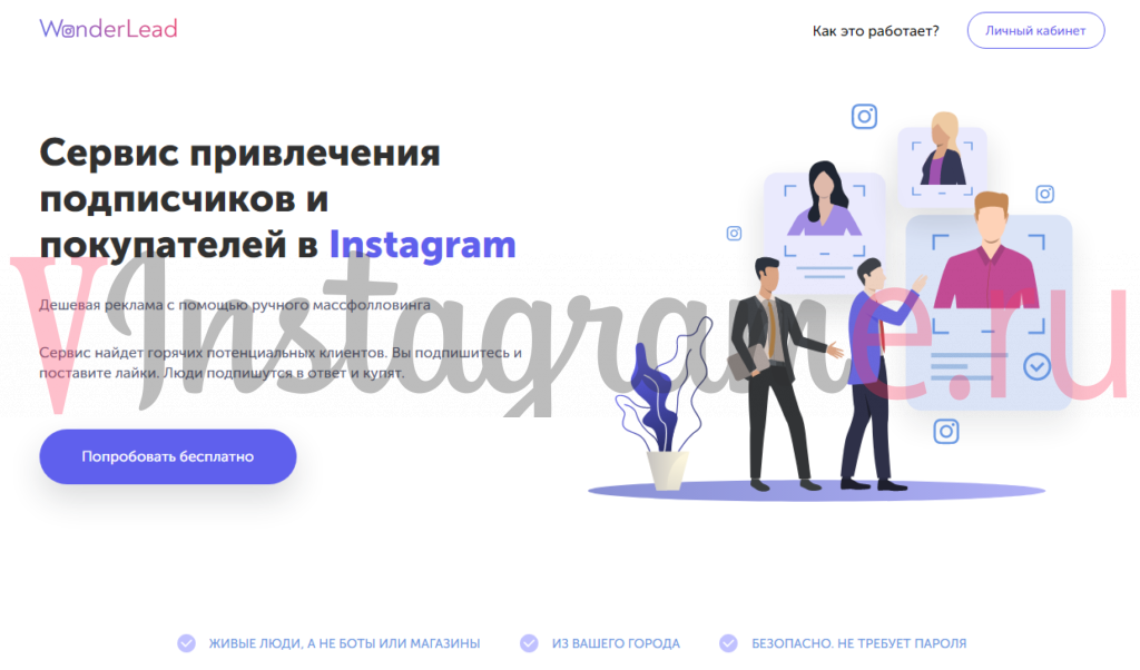 Сервис привлечения подписчиков и покупателей в Instagram. Сервис найдет горячих потенциальных клиентов. Вы подпишитесь и поставите лайки. Люди подпишутся в ответ и купят.