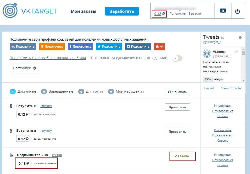 Vktarget – также известная, раскрученная площадка, работает с Фейсбук, ВКонтакте, Инстаграм, Ютуб, Твиттер, Гугл+. Можно зарабатывать на лайках, выполняя задания пользователей системы. Покупка за деньги также доступна.