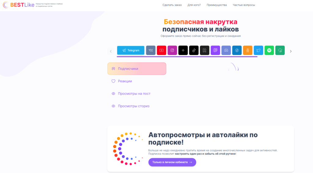 Платформа имеет много партнёров по различным сетям, например Телеграмму, ТикТоку и другим. К тому же идёт хорошая накрутка.