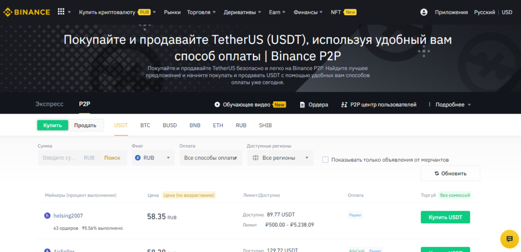 В режиме Peer To Peer (p2p) внизу страницы доступны заявки частных лиц. Если пользователя устраивает курс, он может оплатить выбранную заявку.