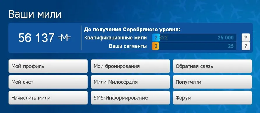 - начисление квалификационных миль за билеты Аэрофлота и компаний-партнёров;