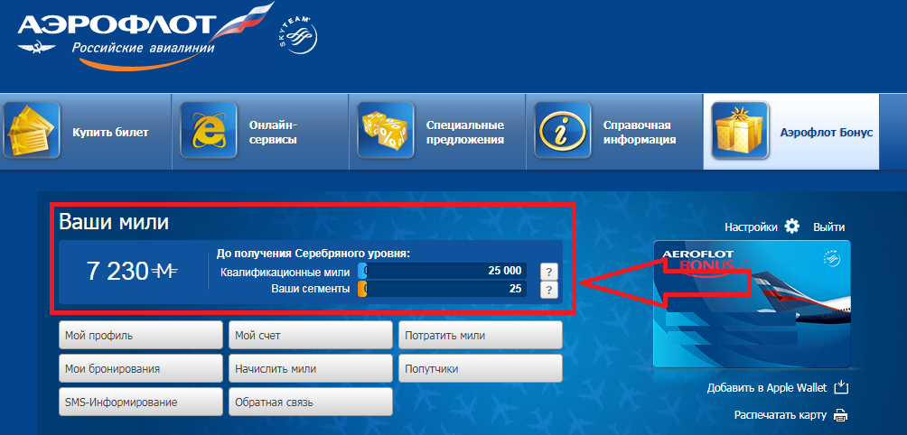 Чтобы узнать, на какой уровень в программе Аэрофлот Бонус