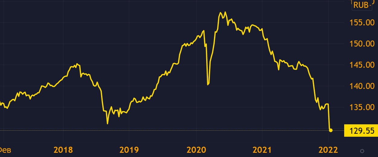 Хотя Тинькофф на первый взгляд выглядит бенефициаром текущего кризиса, как один из крупнейших банков, не попавших под санкции, на финансовых показателях это пока не сильно отражается. При этом банк уже стоит около 2.5-3 капиталов, что на фоне того же Сбербанка за ~0.5 капитала выглядит недешево – вряд ли Тинькофф сможет поддерживать ROE на уровне х3-5 от Сбера, чтобы оправдать такую разницу в оценке.