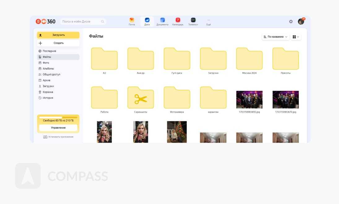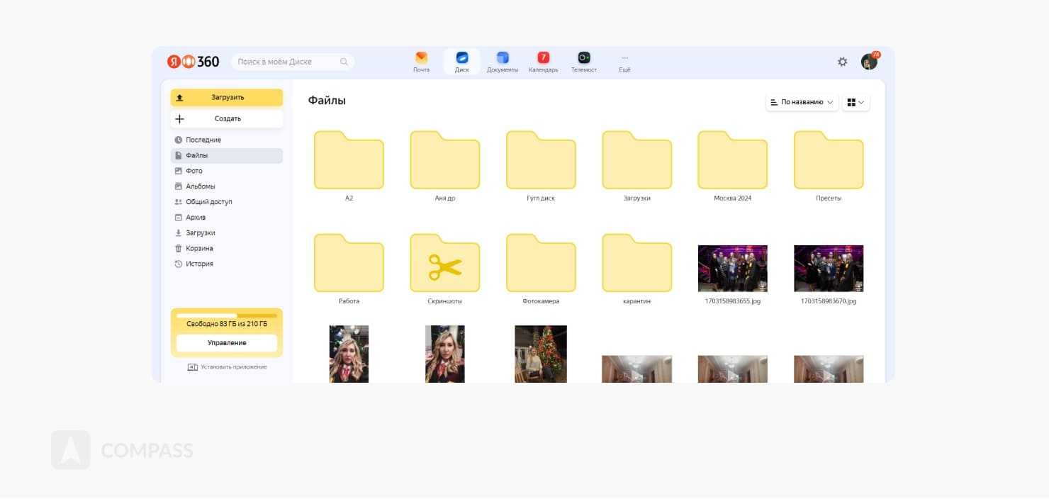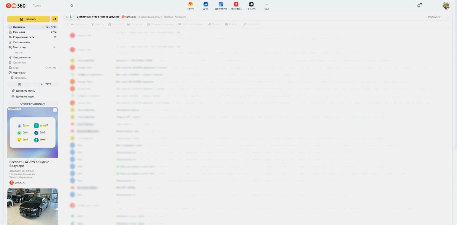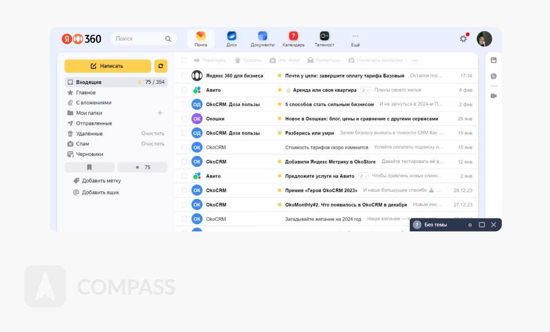 Из верхней панели почтового ящика можно перейти к сервисам «Документы», «Диск», «Календарь» и приложению для видеозвонков «Телемост». А ещё с помощью почтового аккаунта можно получить доступ ко всей экосистеме корпорации: от доставки еды до маркетплейса и нейросети YaGPT.