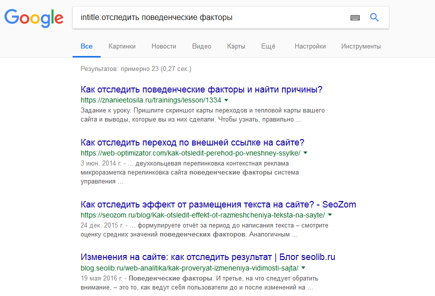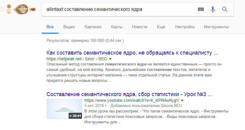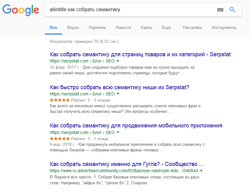 Помогает найти страницы, в Title которых содержится полное вхождение вашего запроса.