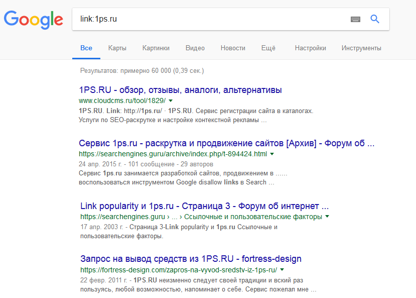 Поисковая выдача покажет страницы, которые ссылаются на указанный вами сайт.