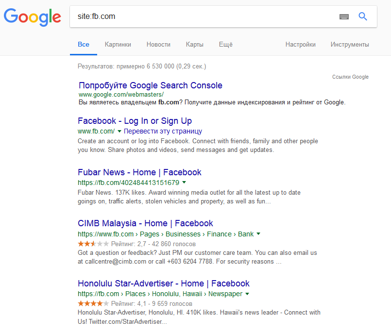 (Ищет вообще все проиндексированные документы на указанном сайте и его поддоменах)