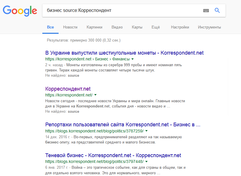 Используется для Google News. Оператор сужает круг поиска с учетом выбранного источника – будь то новостной портал или любой другой сайт.