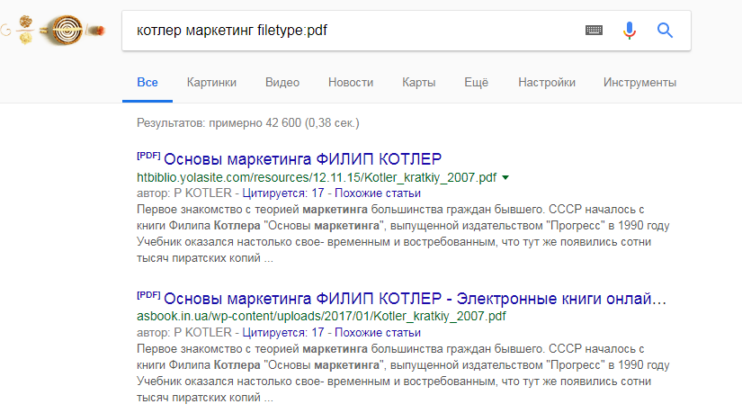 У Google также существует множество поисковых операторов, которые разделены на определенные подгруппы. Начнем с документных.