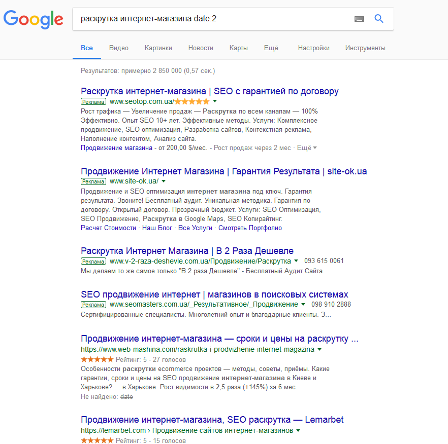 В данном случае Гугл найдет только те документы, которые были опубликованы за последние 2 месяца.