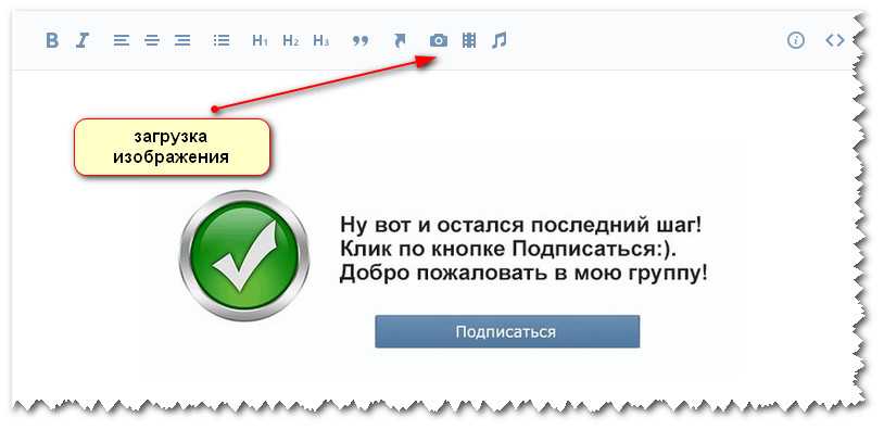 На этом этапе у нас есть возможность добавить на страницу готовое изображение для подписки. Делается это через панель инструментов — Добавить фото.