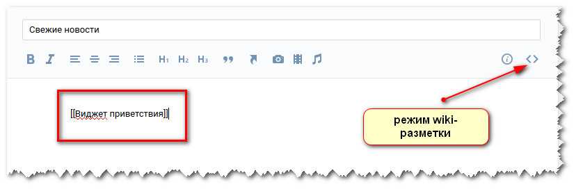 Важно! Слово или фразу необходимо заключить в двойные квадратные скобки: Welcome Widget]