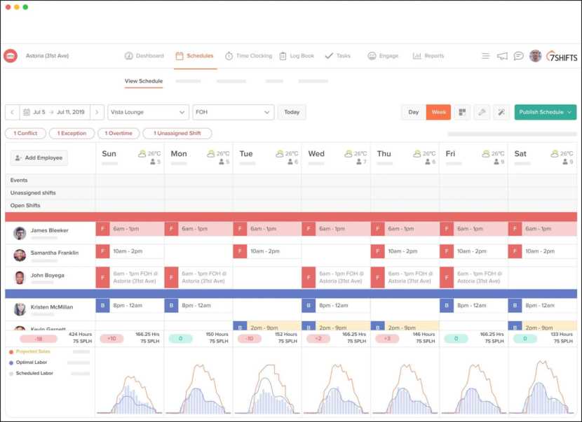 7shifts is a restaurant scheduling software, it helps restaurants schedule more efficiently with intuitive scheduling, communication, time tracking, and compliance tools. The intuitive drag & drop schedule builder automatically factors in availability, time-off, overtime, and compliance, and managers can easily integrate their POS to ensure they hit their labor targets.