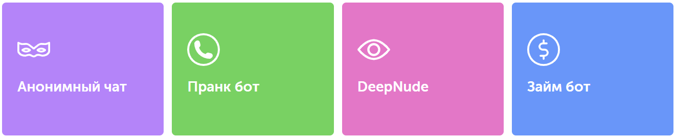 Пранк бот — продает звонки-розыгрыши на телефоны друзей. Пользователь получает нереально удивленного друга, кучу эмоций от записи разговора и возможность поделиться записью разговора с друзьями. Доход с каждой продажи 7 — 50 рублей. Подойдет для сообществ с приколами, тематики юмор и другим тематическим сообществам.