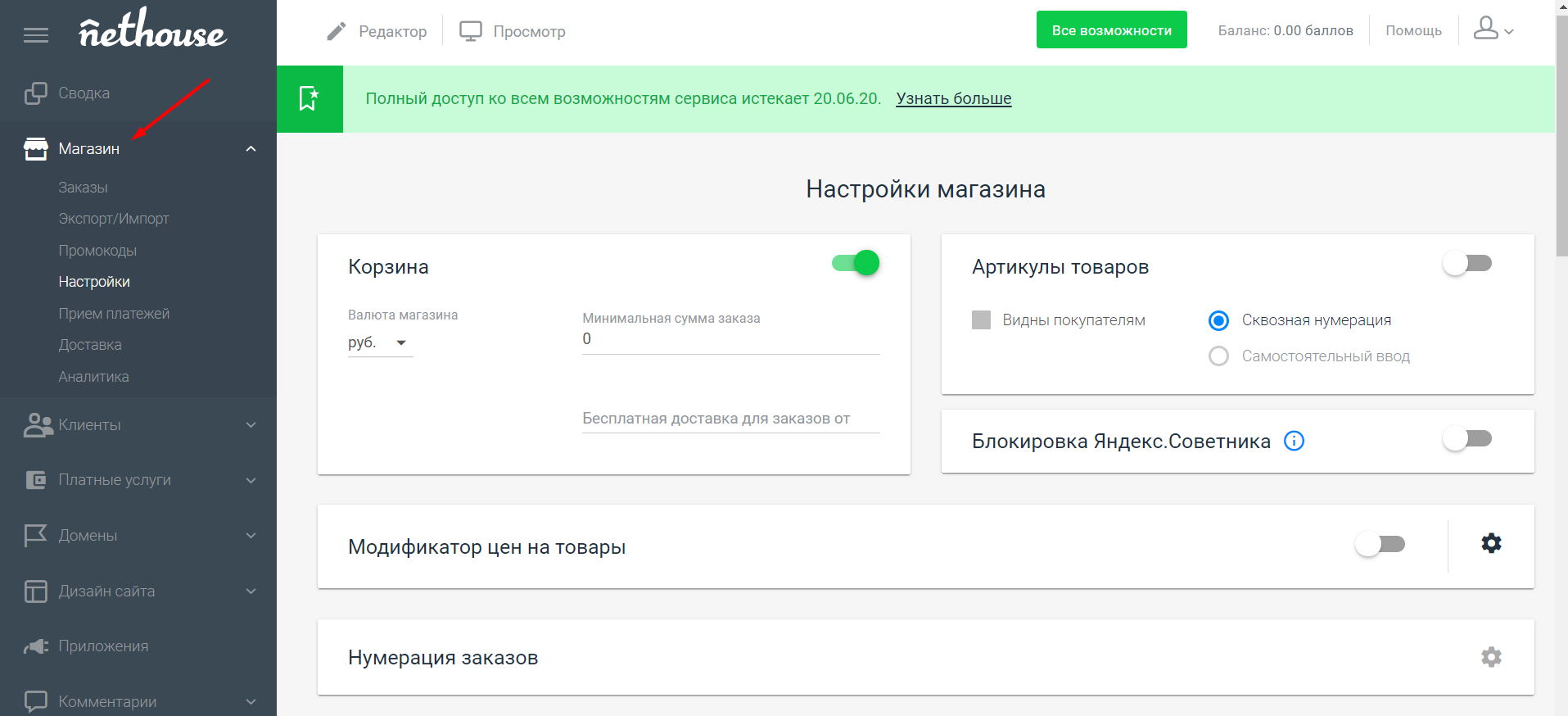 Бесплатное размещение для пользователей на домене третьего уровня, например «вашсайт.nethouse.ru». Если вы заплатите какие-либо сборы, вы получите домен типа «site.ru» бесплатно.