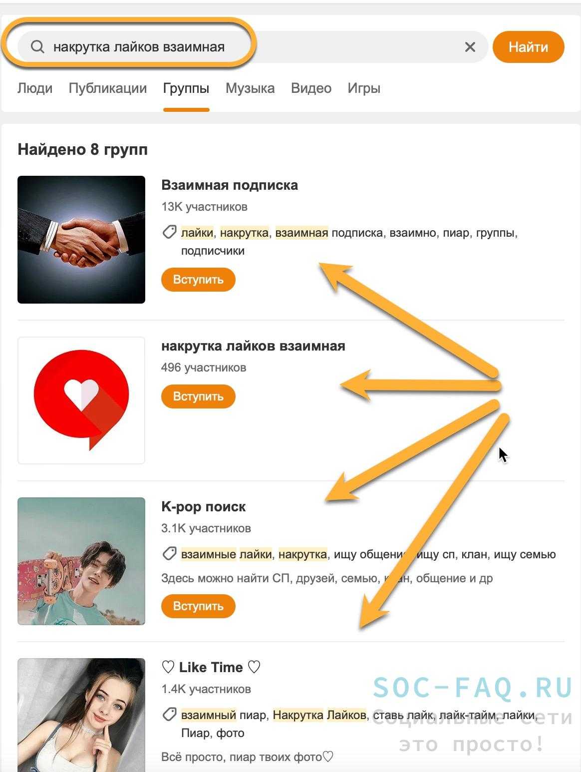 В «Одноклассниках» создано большое количество групп по продвижению страниц.