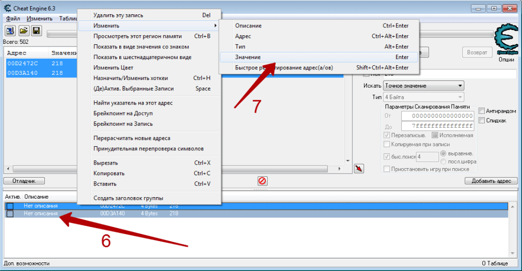 ». Далее выделите в таблице эти значения, кликните по ним правой кнопкой, выберите строчку «Изменить