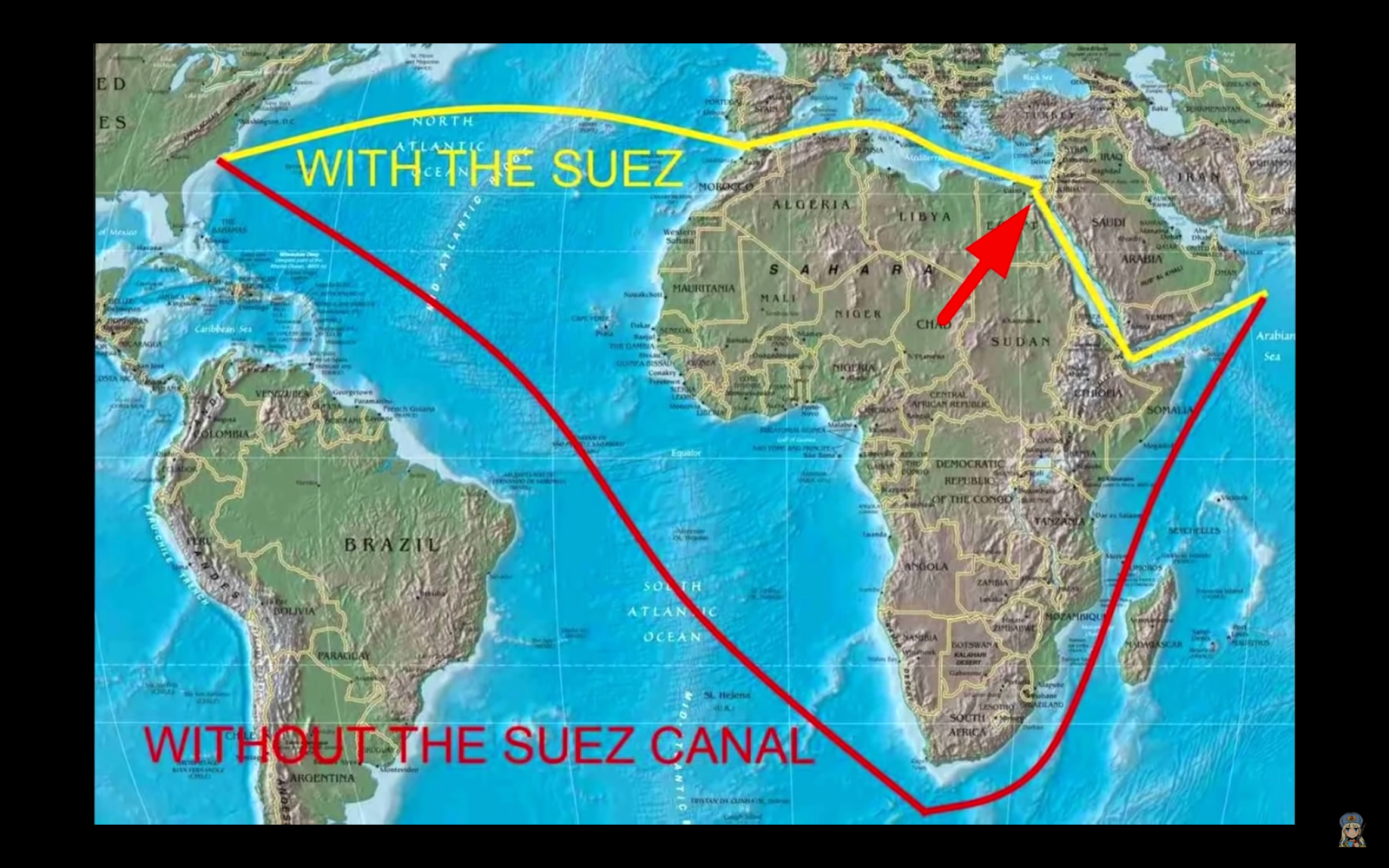 Плюс к этому Египет вводит с 1 мая дополнительную пошлину в 15% на проход танкеров с нефтепродуктами через Суэцкий канал. Суэцкий канал — это кратчайший путь между Индийским океаном и акваторией Средиземного моря — то есть с Европой. Другой путь огибает Африку, плюсом еще восемь тысяч километров.