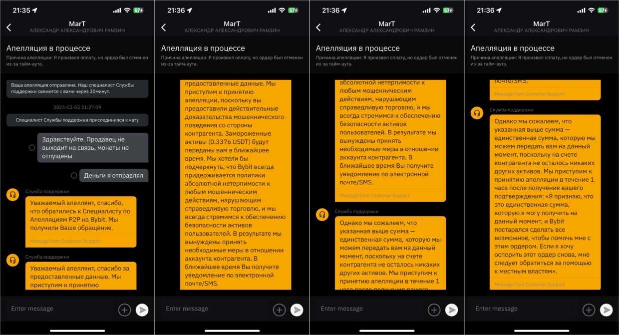 Я отправил скриншот с заключением Bybit по делу в поддержку и попросил ещё раз рассмотреть заявку.