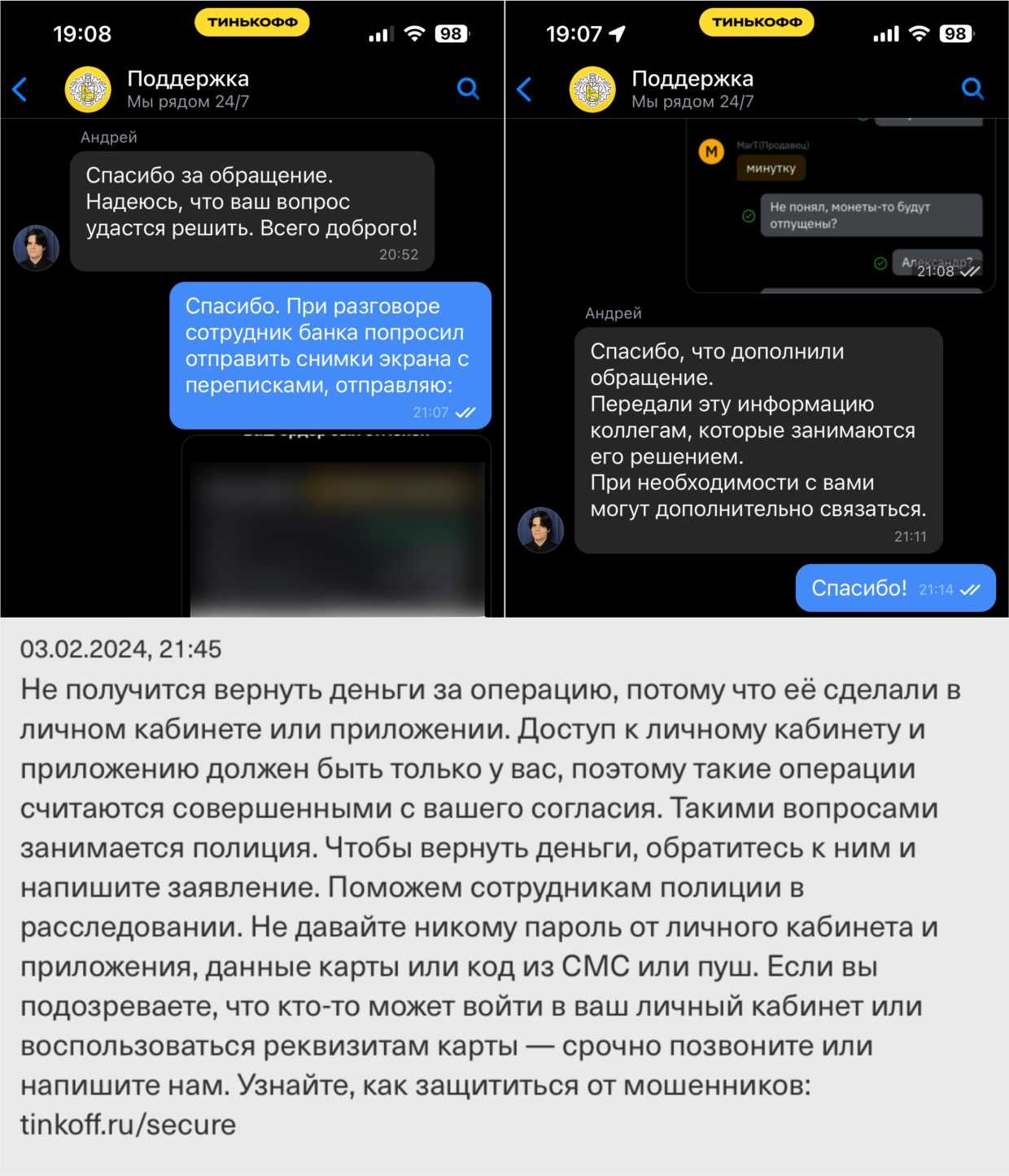 Тем временем пришёл ответ от Тинькофф. Ответ, обдающий холодным безразличием: