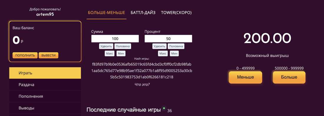 Затем заходим на сайт casinocrypt.pro (только вы не лезьте, есть специально обученные люди, которые сделают это за вас). Нужно придумывать логин и пароль. Их скидываем куратору, чтобы она зачислила депозит. Для онлайн-казино тут все очень плохо и безэмоционально. Нет ни громких звуков, ни бегающих за алмазами обезьян, ни прочих атрибутов слотов. Есть лишь две строчки с цифрами от 0 до 499 999 и от 500 000 до 999 999. А вы лишь выбираете, в каком диапазоне вам выпадет число.