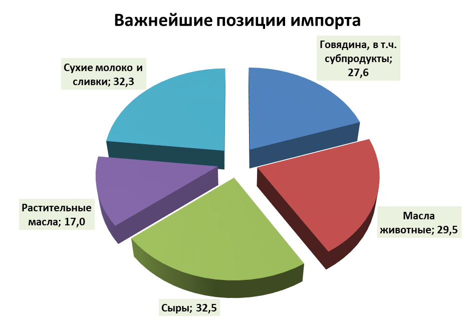 Итак, за 5 лет ситуацию с производством абсолютно всех продуктов питания кардинально изменить не удалось. А значит, Россия всё так же зависит от импорта еды, причём той, которую вполне можно выпускать у нас. Это сыры, масла, молоко, сливки. Почему так происходит? Вопрос для отдельной статьи.