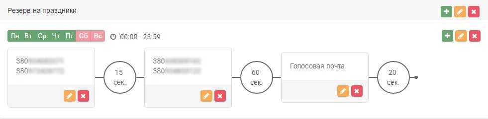 - Вы можете настроить вашу виртуальную АТС в соответствии с вашим рабочим графиком и выходными днями. Например, она может переадресовывать звонки, поступающие в нерабочее время, на мобильные номера сотрудников. Ниже пример, как выглядит в Ringostat схема переадресации на период нерабочего времени в праздники: