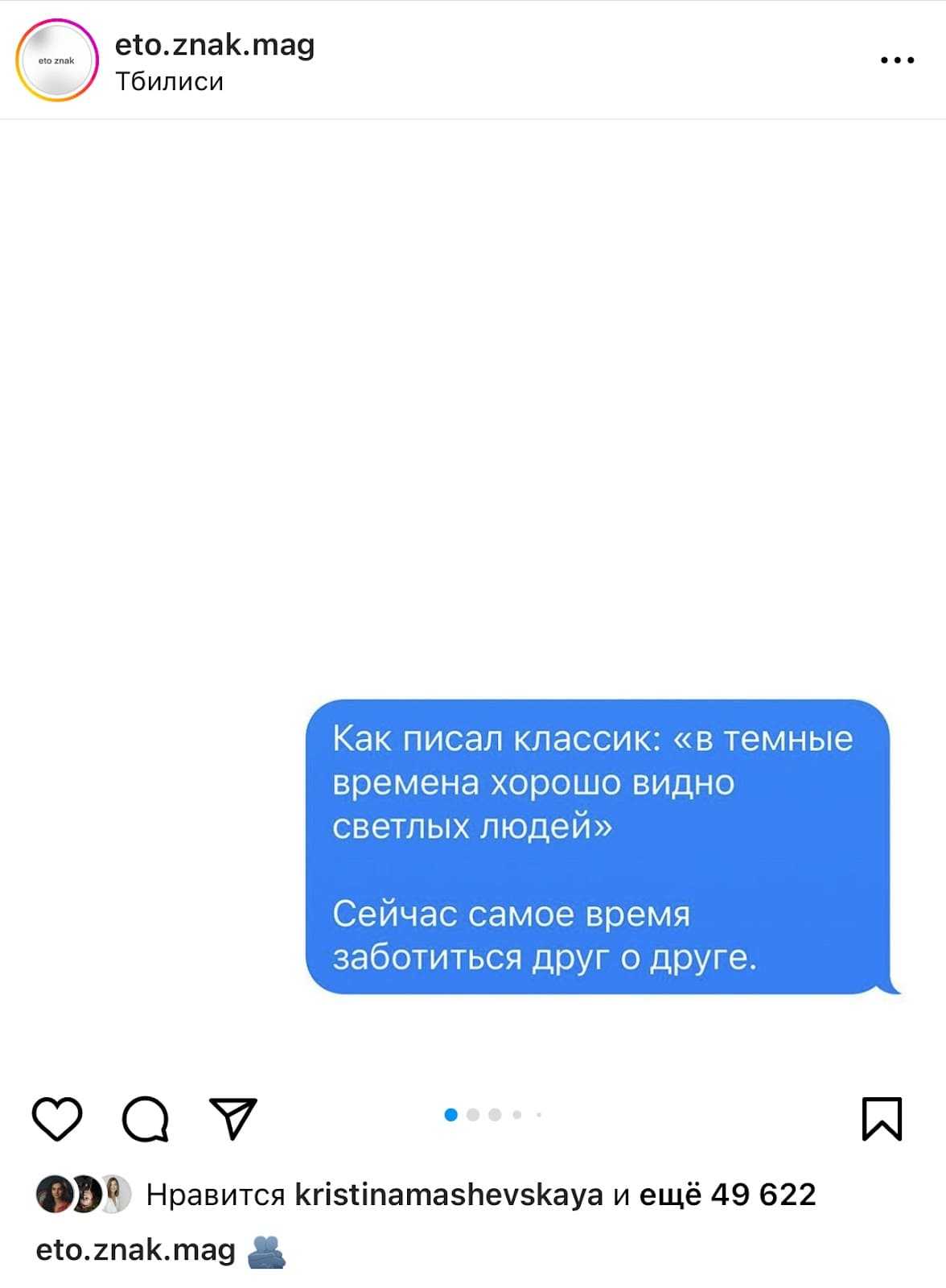 Так, сообщество «Это знак» выпустило серию карточек с цитатами, которые поддержали подписчиков в трудное время и подсветили ценности бренда: вера в лучшее, помощь людям, оптимизм.