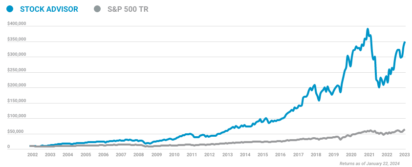 Calculated by average return of all stock recommendations since inception of the Stock Advisor service in February of 2002. Returns as of 03/05/2024.