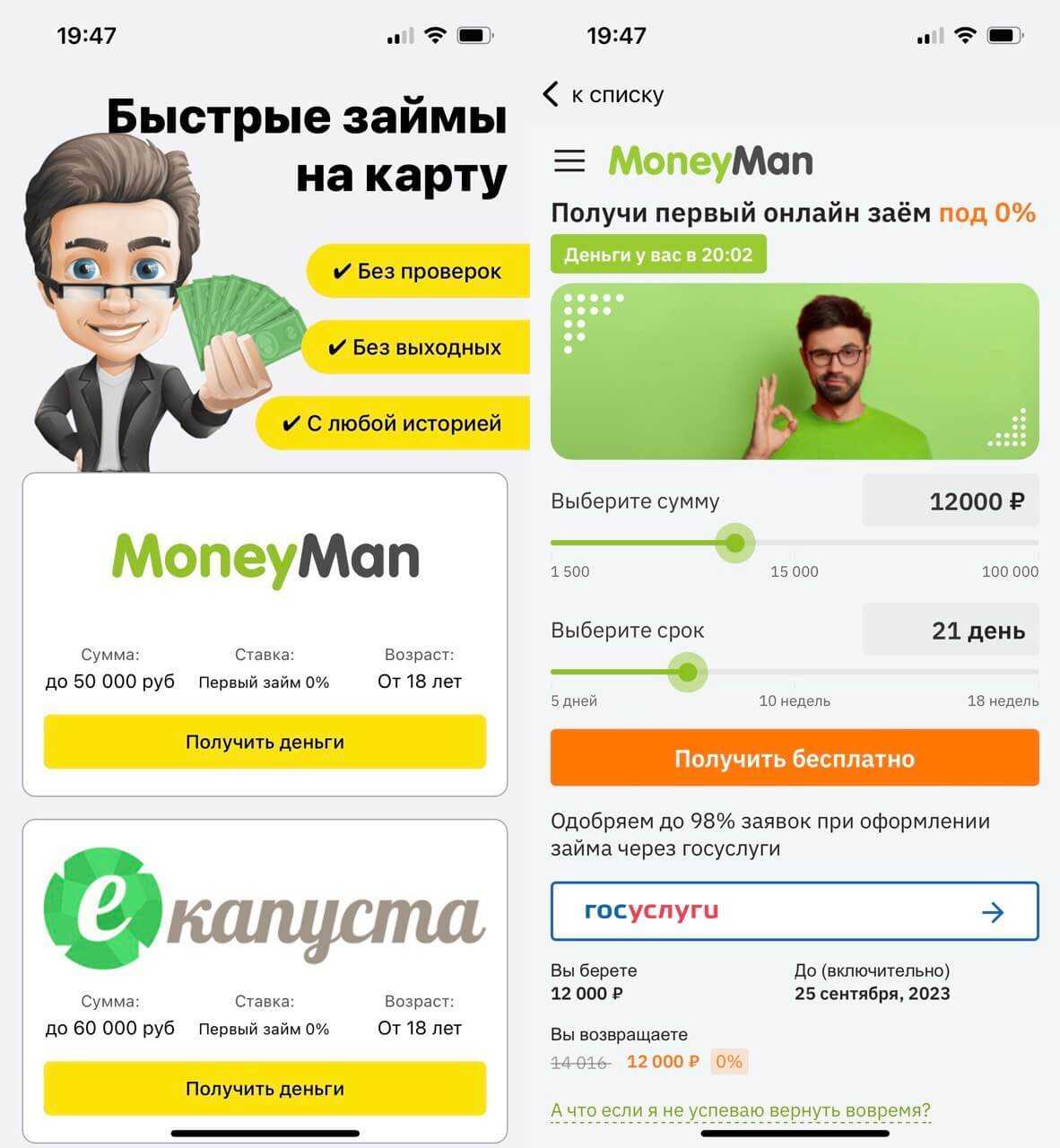 Второе приложение СБОЛ — Займы онлайн отдаленно напоминает оригинал хотя бы своим названием. Вот только внутри — далеко не набор функций Сбера. Прямо на главной странице реально появляются предложения получить займы буквально за несколько минут.