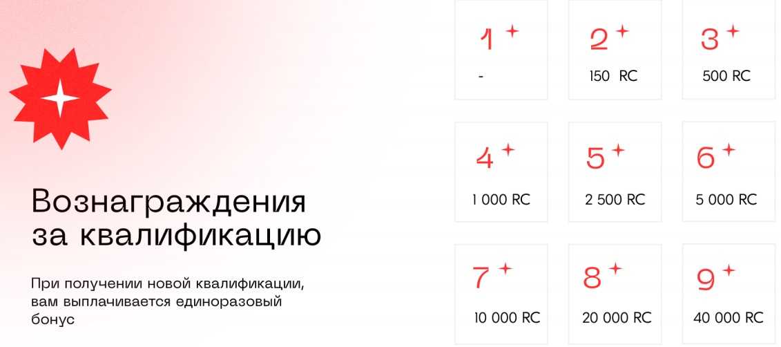 Беспринципные люди, которые тащат в Rcoin друзей и знакомых, чтобы получить их деньги на свой депозит, расхватывают квалификации. Каждая новая квалификация приносит единоразовый бонус в крупном объеме: один RC = один доллар США.