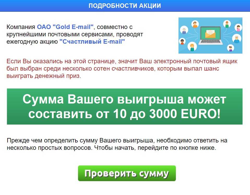 Яркая реклама на странице отвлекает внимание, заманчивый фишинговый контент заставляет задержаться здесь подольше. Например, розыгрыш крупных призов, в том числе денежных, выгодные акции с установленным таймером обратного отсчета: «Поторопитесь! Время истекает!»