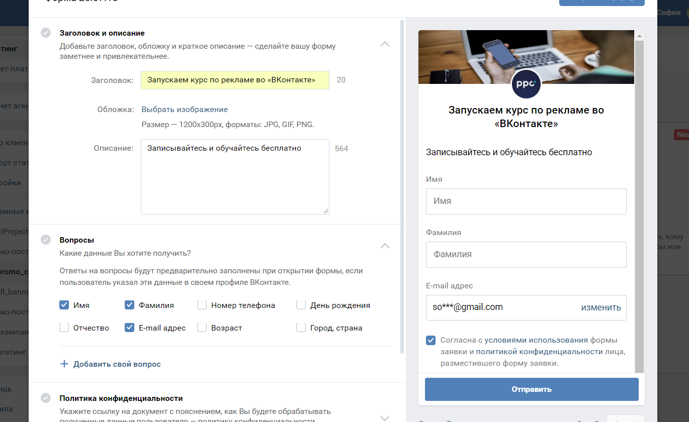 Как провести рекламную кампанию с использованием лид-формы ВКонтакте