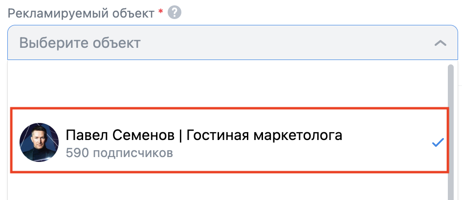 Выбираем сообщество, которое будем рекламировать.