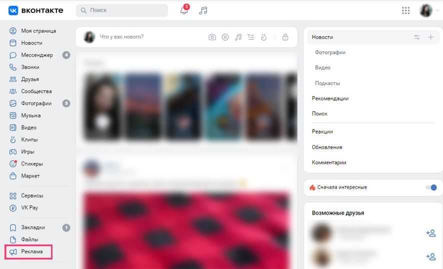 Меню сервиса «VK Реклама»