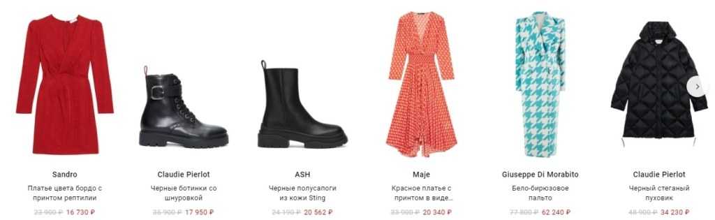Российский маркетплейс брендовой одежды, в основном представлены спортивные бренды. Можно найти вещи Adidas, Calvin Klein Jeans, Stone Island и других фирм со скидками до 70 %. Доставка бесплатная при заказе от 8 000 рублей, при меньшей покупке — 490 рублей.