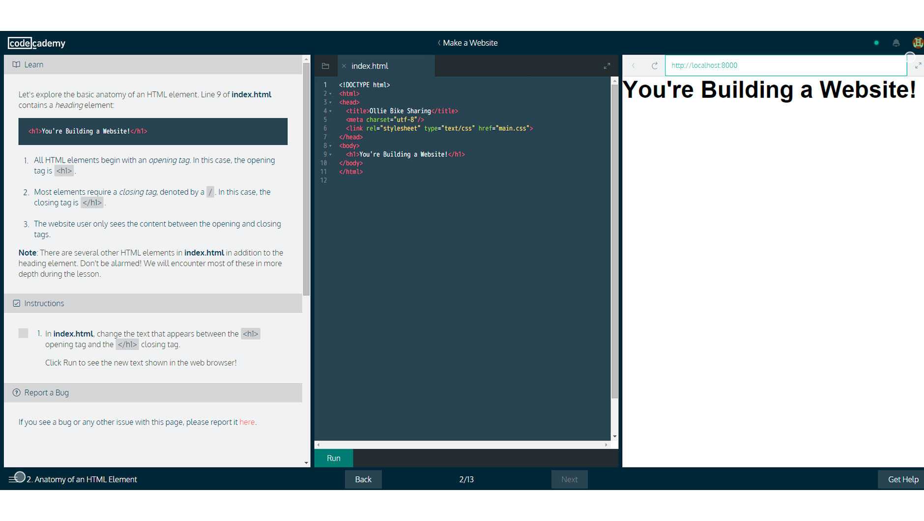 Как и в предыдущих платформах, Dash включает в себя редактор кода, с помощью которого ученики могут опробовать туториалы. Рядом находится интерфейс, где они могут увидеть, как выглядит их сайт в режиме реального времени.