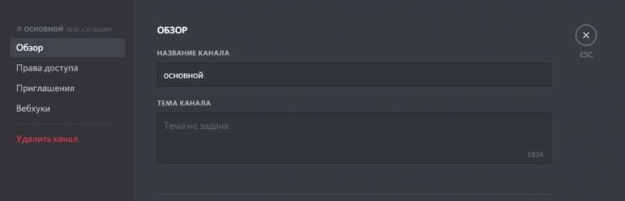 Настройки канала имеют свои особенности. Давайте рассмотрим базовые опции.