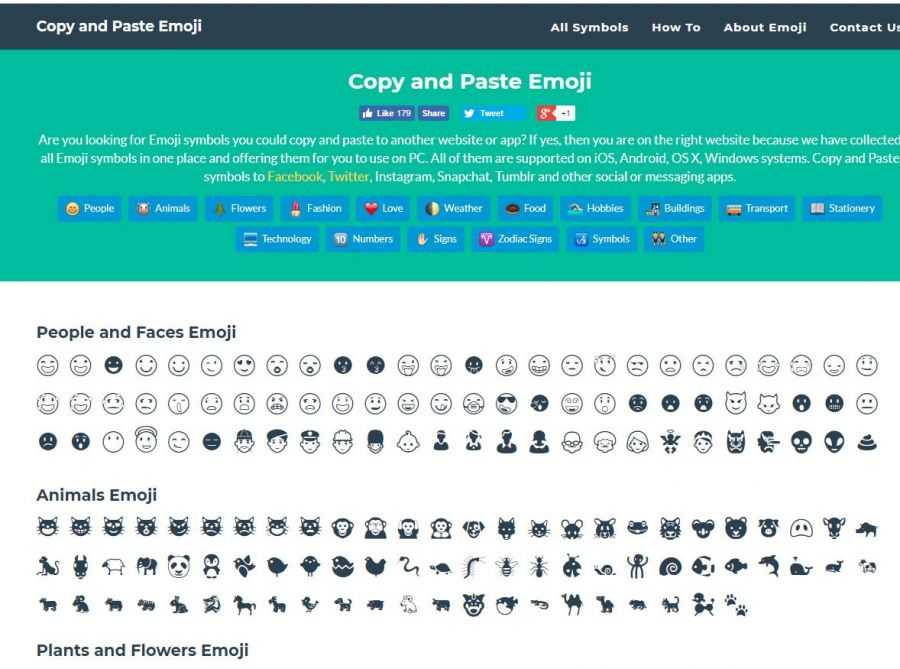 1. Предварительно найдите коллекцию иконок в Сети. Можно, например, воспользоваться ресурсом – https://www.copyandpasteemoji.com/.