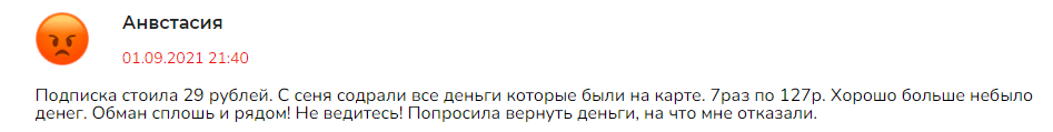 Давая согласие на списание 1 рубля, вы автоматически привязываете свою карту к сайту. На первый взгляд – ничего запрещённого. Компания представила публичную оферту, где описаны условия использования сервиса. Деньги списываются автоматически до тех пор, пока не произойдёт отписка. В интернете есть реальные отзывы от тех, кто лишился приличных сумм.