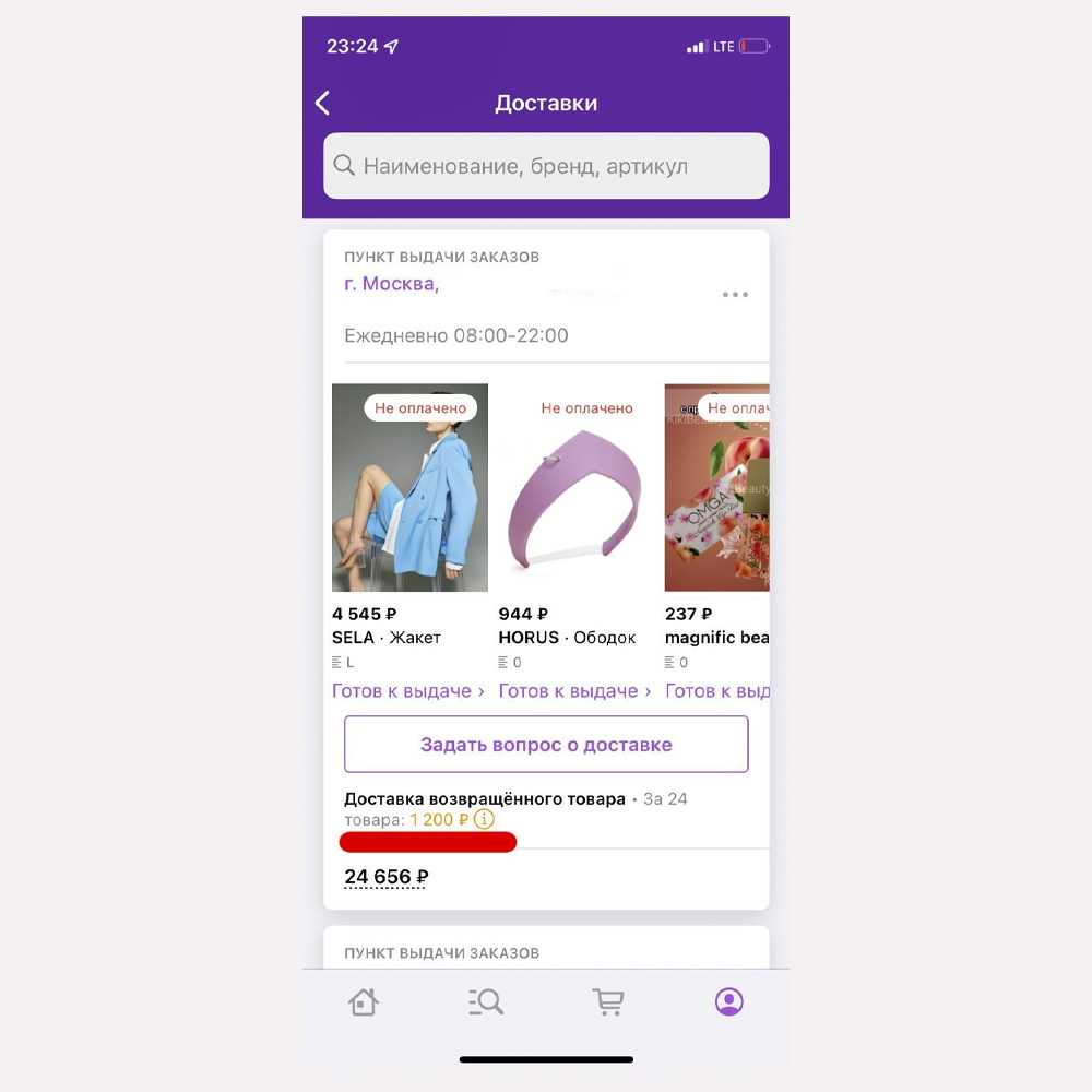 Несмотря на то, что Wildberries не удалось списать деньги, все товары на 24 656 рублей были успешно доставлены в пункт выдачи заказов. И теперь нам нужно заплатить 1200 рублей за отказ и возврат. Просто на ровном месте мы оказались должны магазину 1200 рублей.