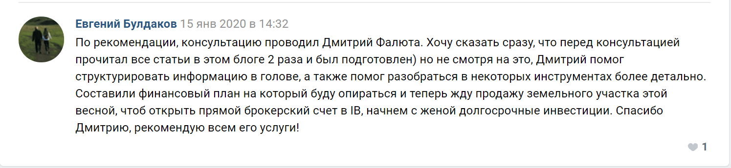 отзывается о консультации Дмитрия Фалюта – члена команды «Investbase». Он