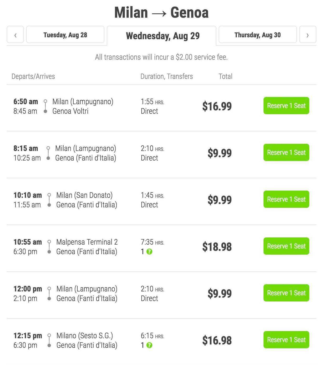 На автобусах «Фликс-бас» из Милана в Геную можно доехать за 10 €
