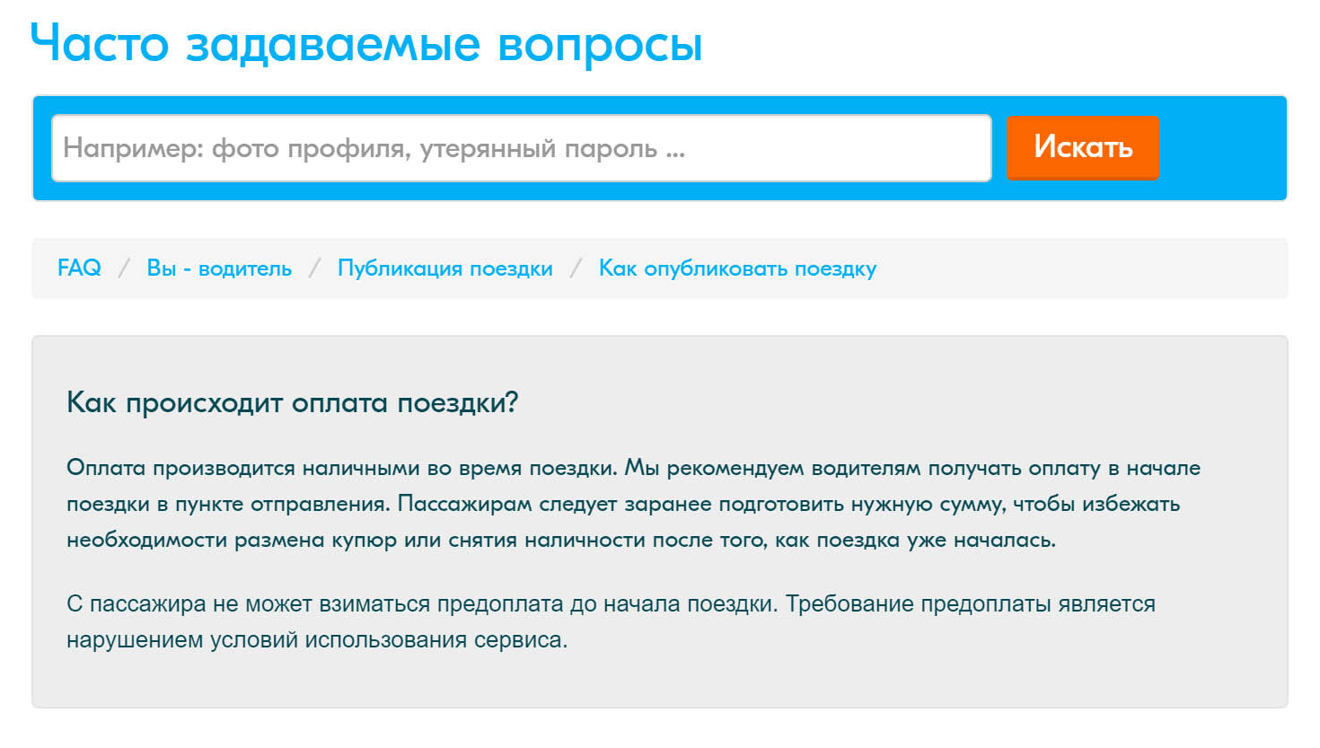 Условия оплаты описаны на официальном сайте «Блаблакар»