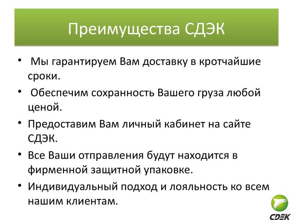 Компания СДЭК изначально была открыта как курьерское подразделение онлайн-магазина korzina.ru, причем специализировалась она по Сибири и региону Дальнего Востока. Но когда магазин закрылся, служба доставки продолжала развиваться и на данный момент приобрела федеральный масштаб. На данный момент она составляет серьезную конкуренцию другим службам, в том числе и Почте России, поэтому стоит рассмотреть, что будет лучше: СДЭК или ЕМС.