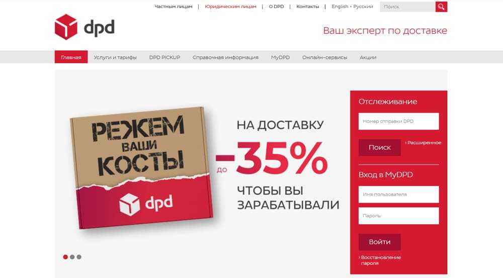 Оптовые клиенты и крупные онлайн магазины работают с DPD на индивидуальных условиях с недорогой доставкой и помощью от личных консультантов. Отследить свою посылку можете в личном кабинете компании. Сервис вошел в рейтинг благодаря широкому выбору вариантов доставки, большому количеству постаматов и терминалов для выдачи.