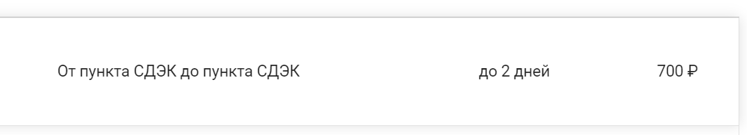 Так как мы ведем сравнение в идентичных условиях, выберем тариф с отправкой в пункте СДЭК и вручение в пункте СДЭК. Вот что у нас получается при весе в 3 кг и параметрах 15/15/20:
