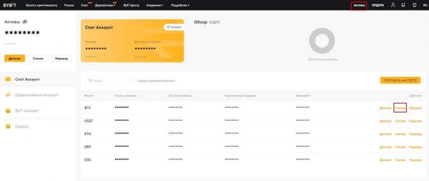 Мои активы – этот раздел показывает текущий баланс каждой криптовалюты, которой вы владеете на Bybit. Вы также можете вводить и выводить средства, просматривать историю транзакций и управлять адресами своих кошельков.
